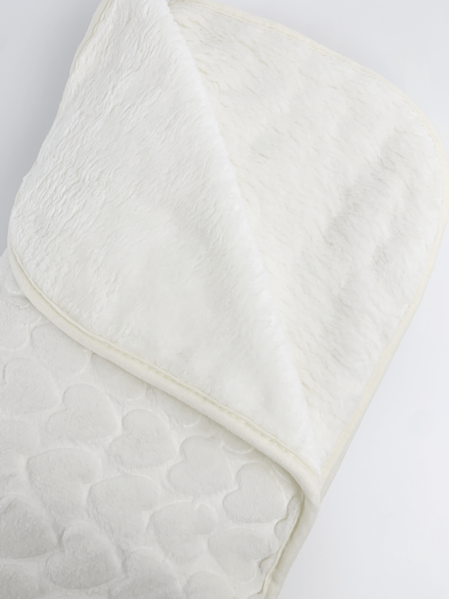 Exteriorul are un model cu inimioare, iar interiorul este captusit cu puf moale si calduros, ideal pentru pielea sensibila a celor mici.