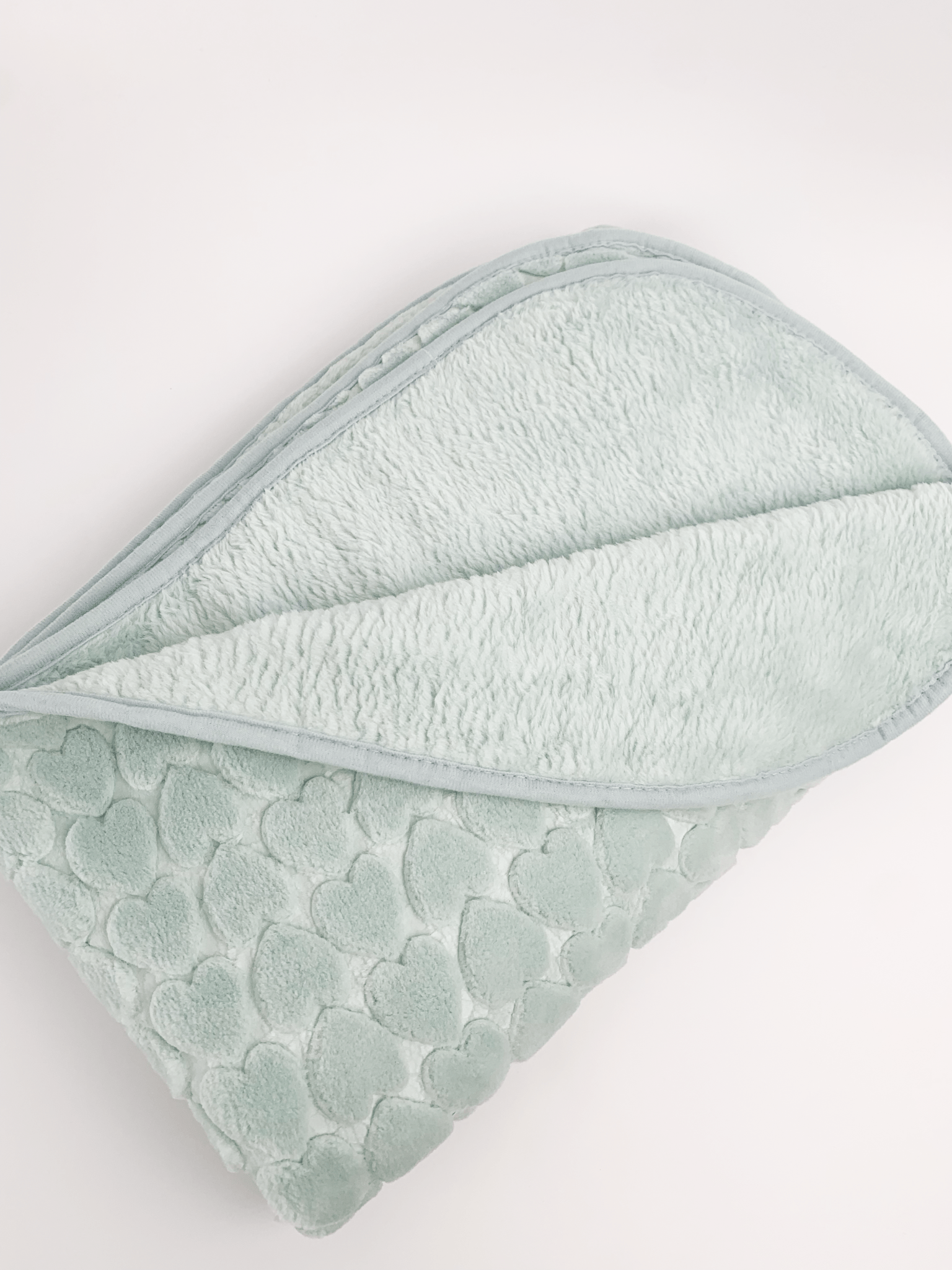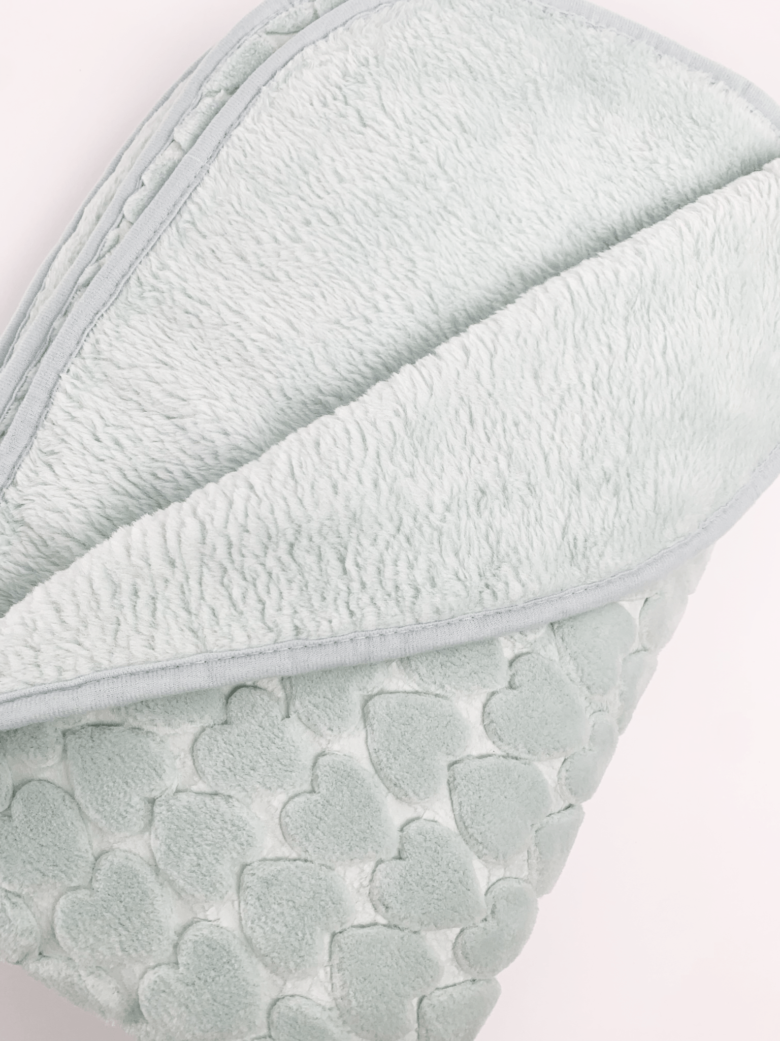 Exteriorul are un model incantator cu inimioare, iar interiorul este captusit cu puf moale si calduros, ideal pentru pielea sensibila a bebelusilor.