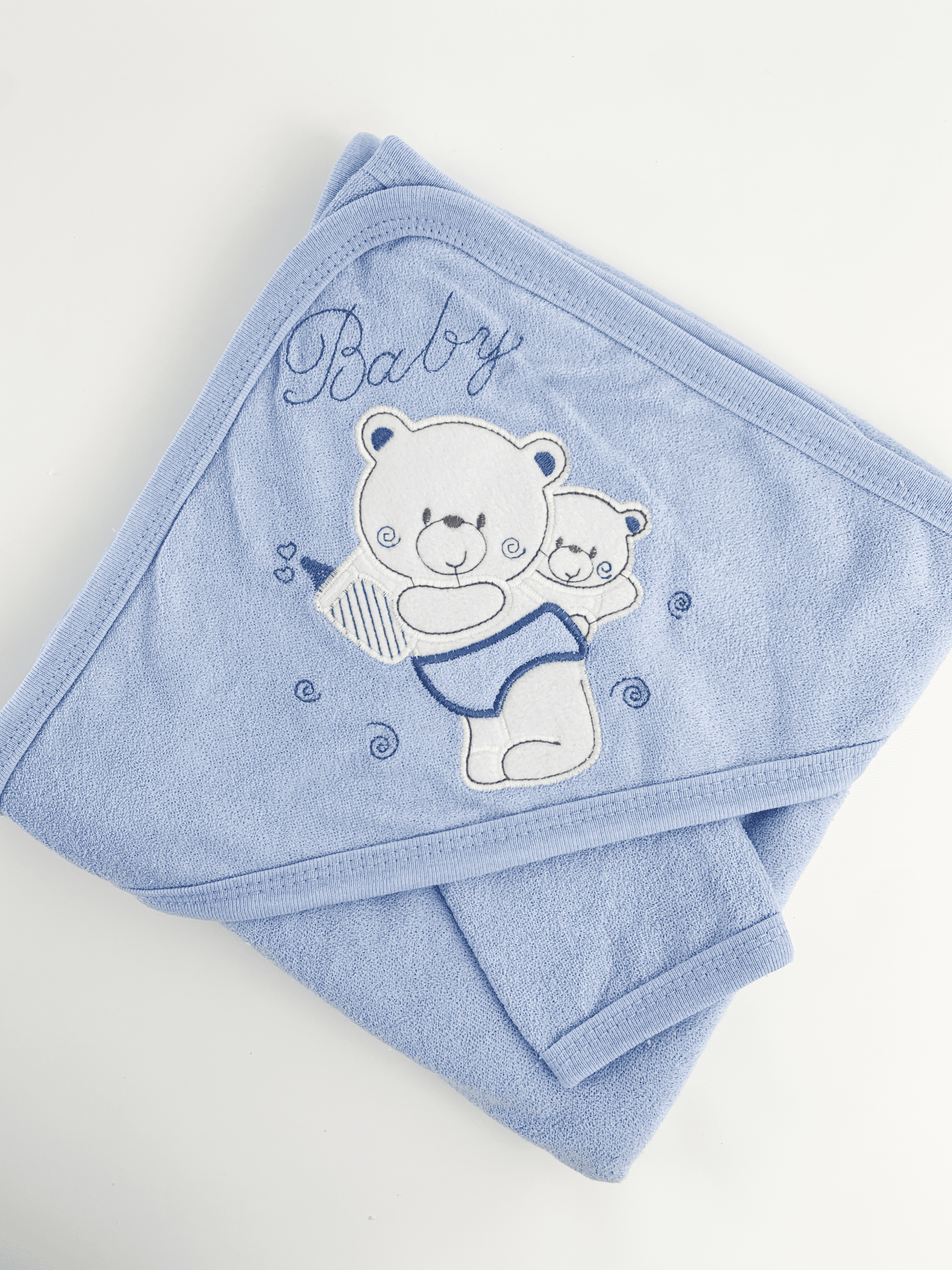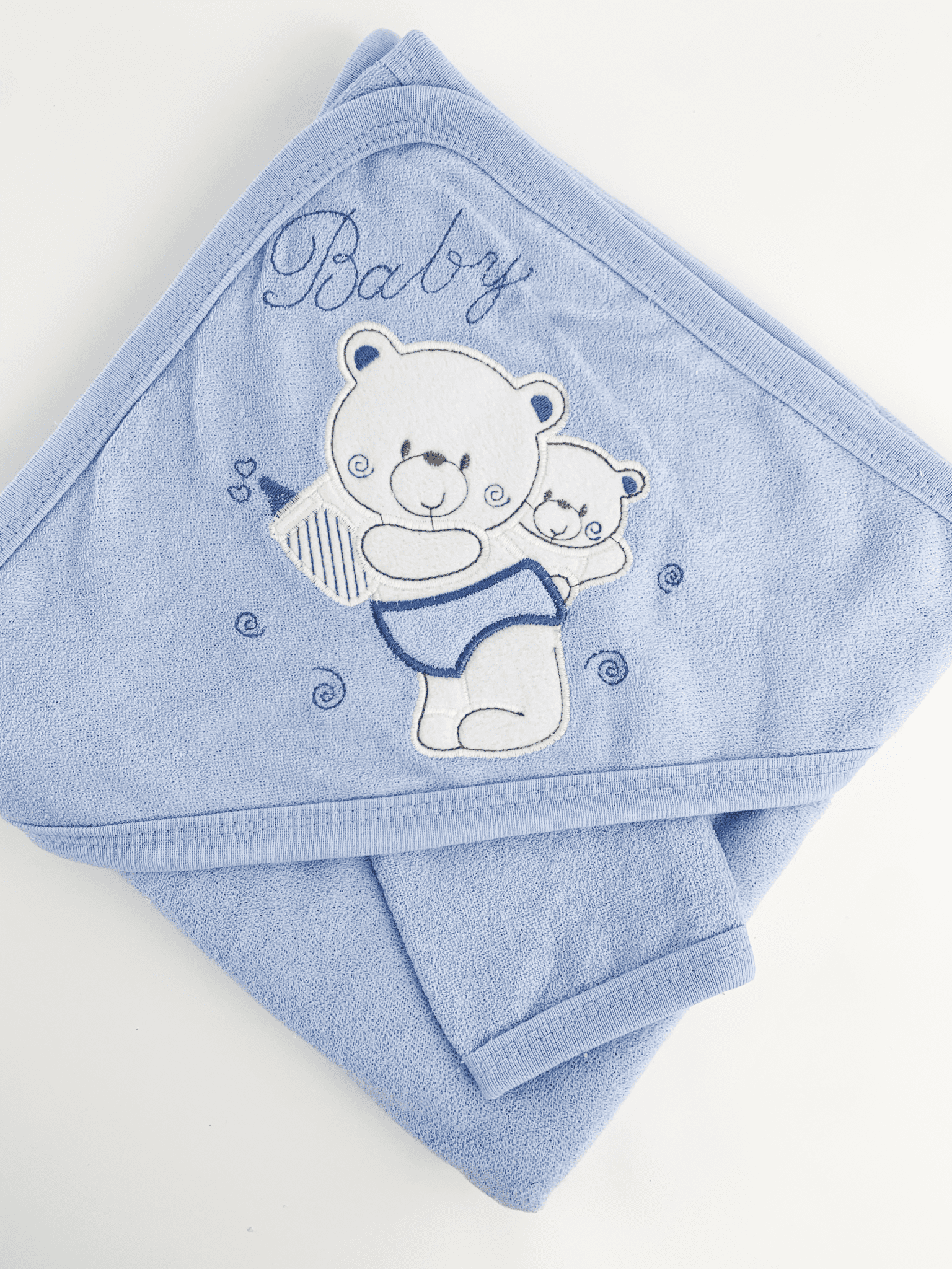 Prosop baie brodat cu ursuleti - albastru - Botez bebelusi