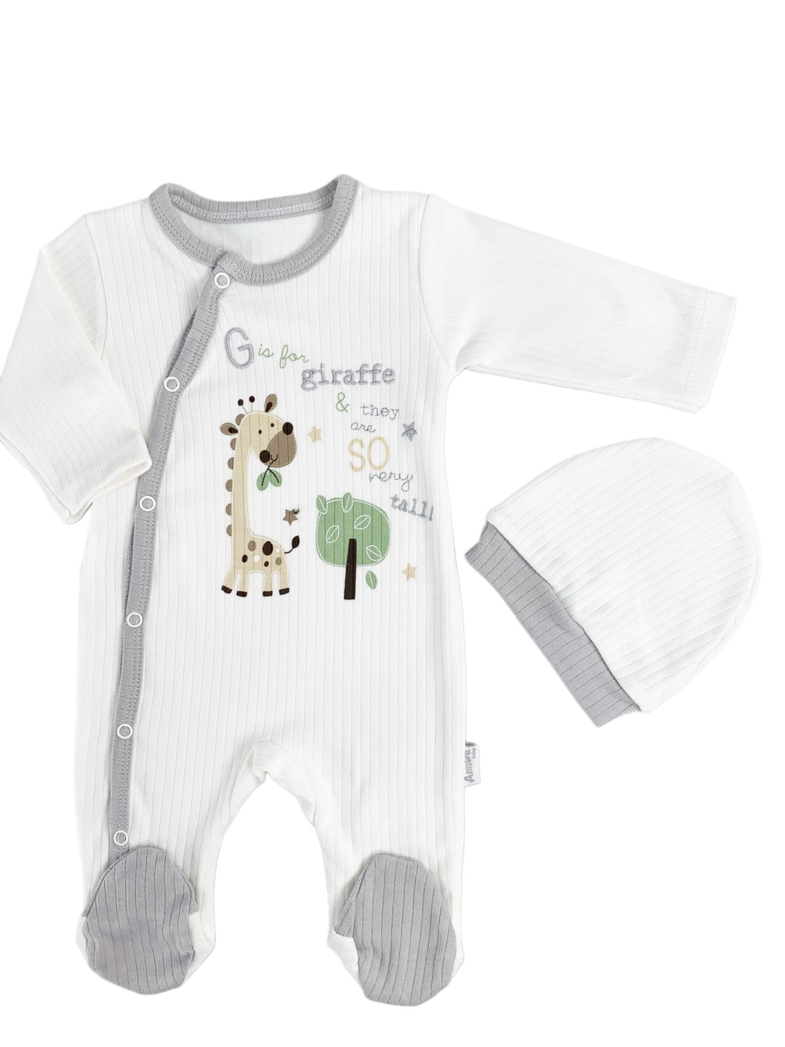 Salopeta Nou-Nascut gri cu girafa - 2 piese