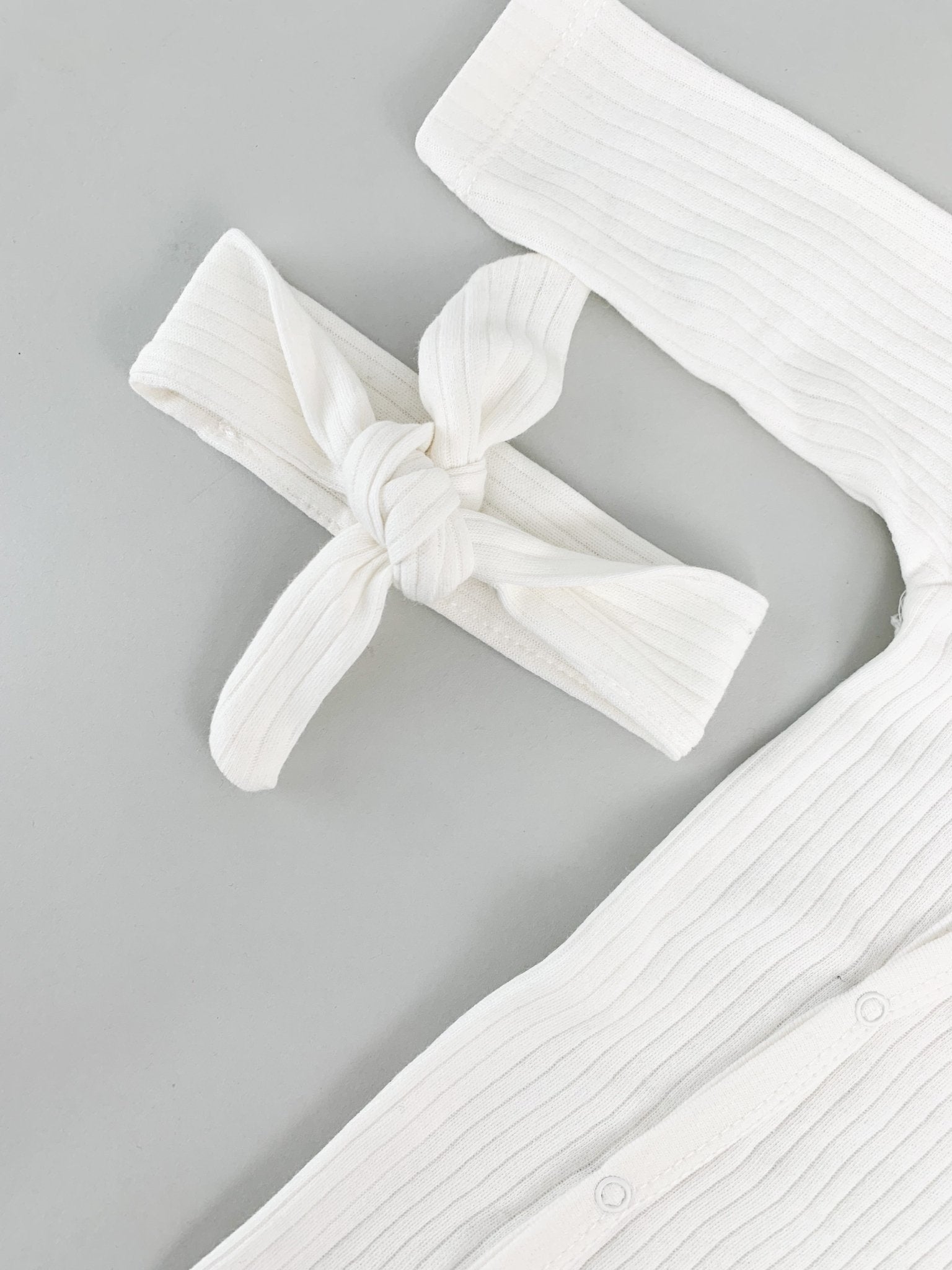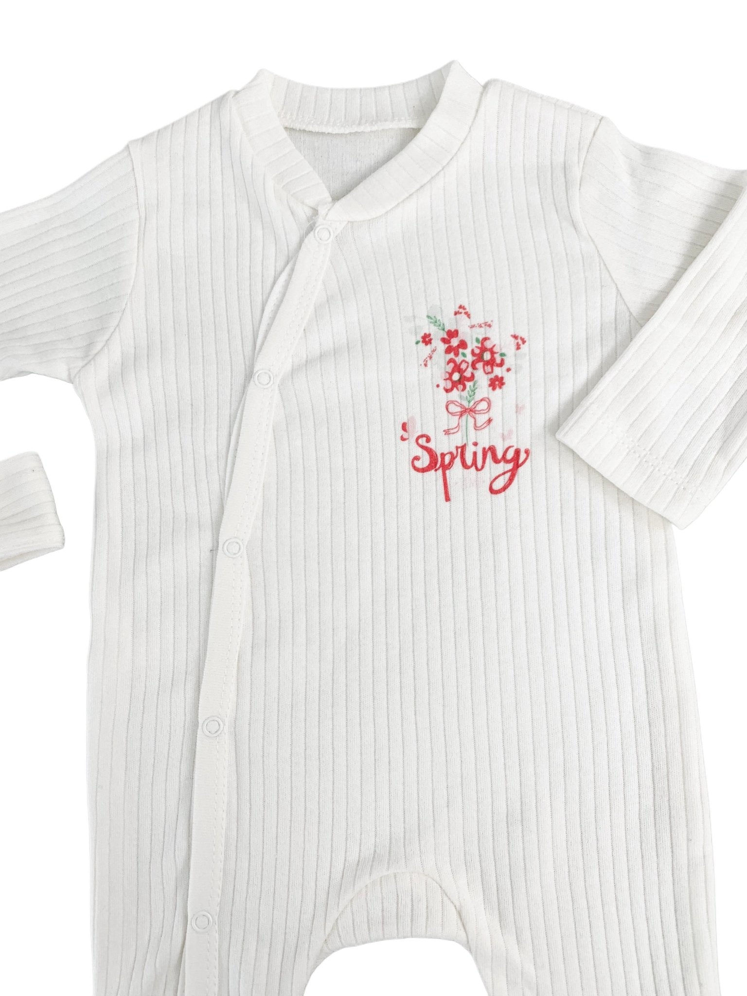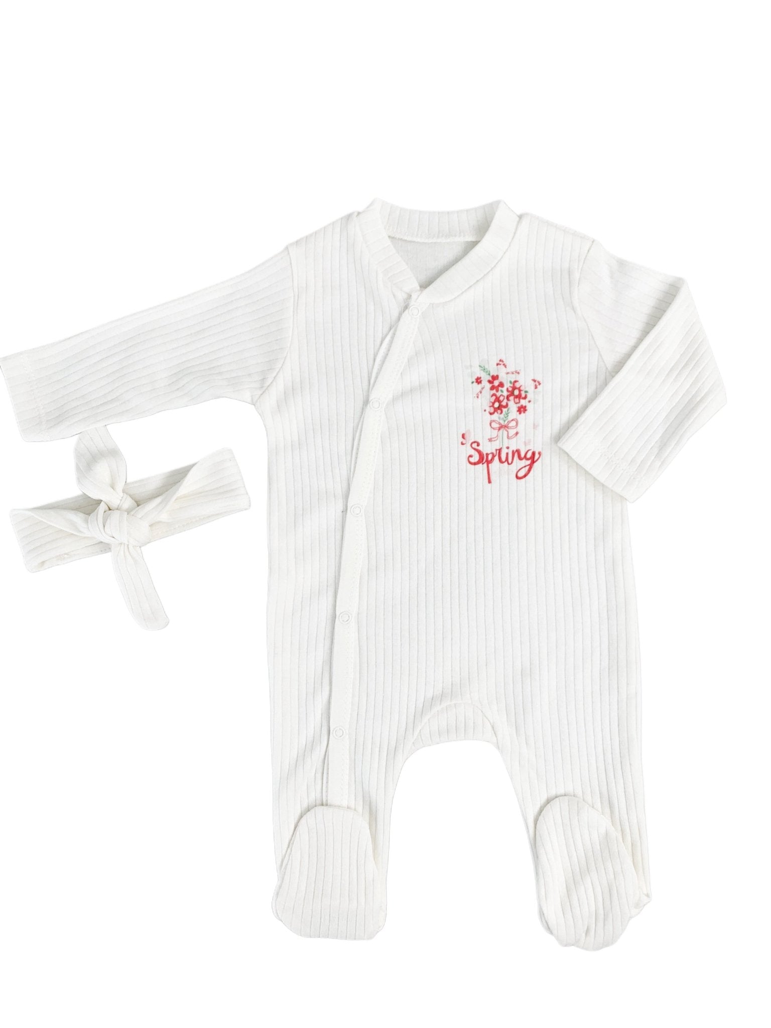 Salopeta fetite alba buchetel de flori - 2 piese - Botez bebelusi