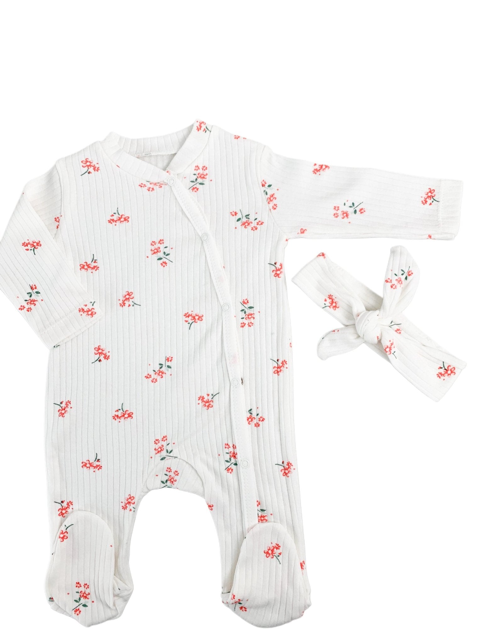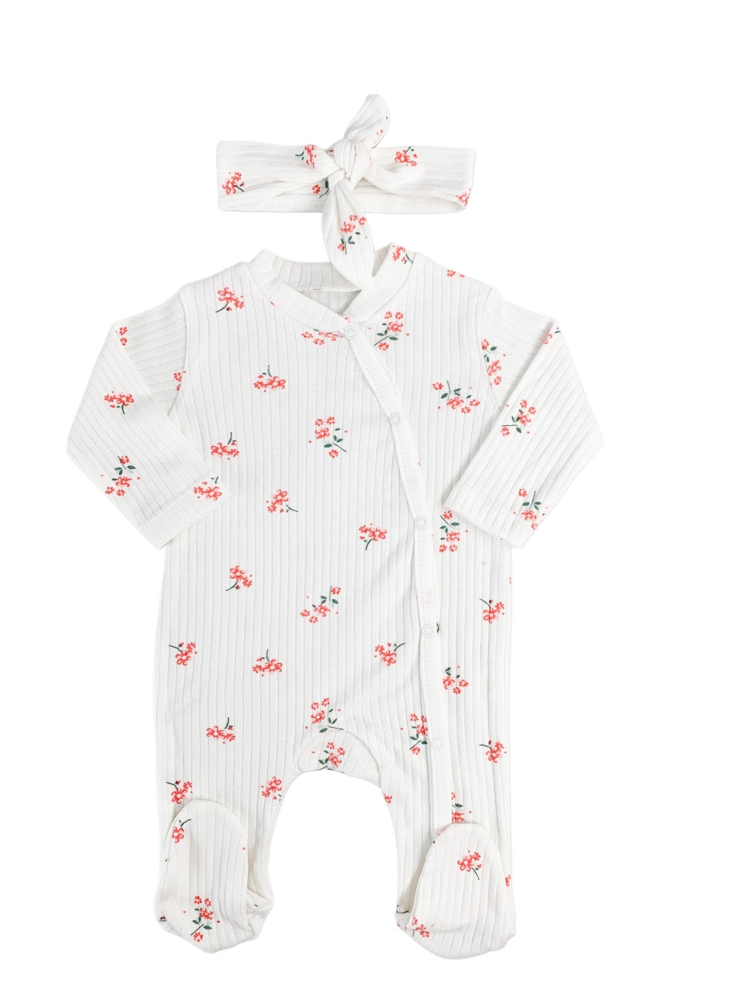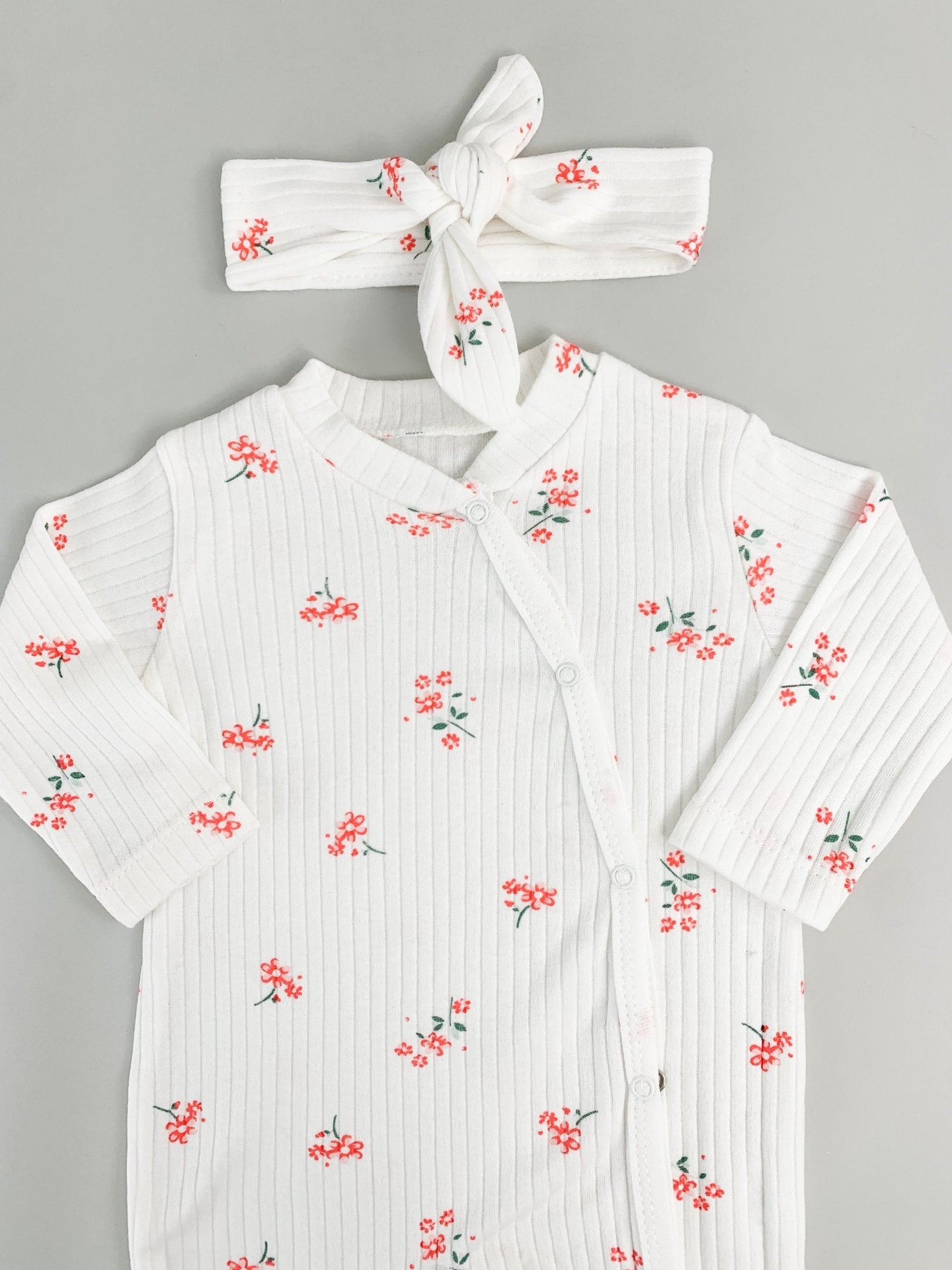 Salopeta fetite alba cu flori - 2 piese - Botez bebelusi