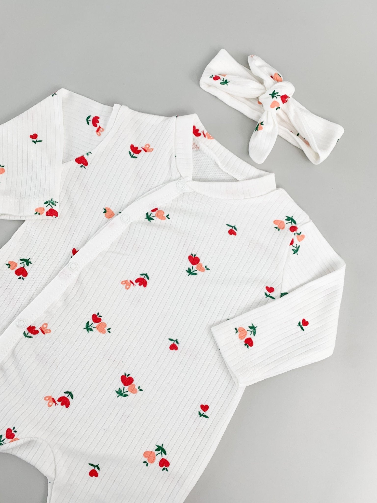 Salopeta fetite alba cu flori si bentita - 2 piese