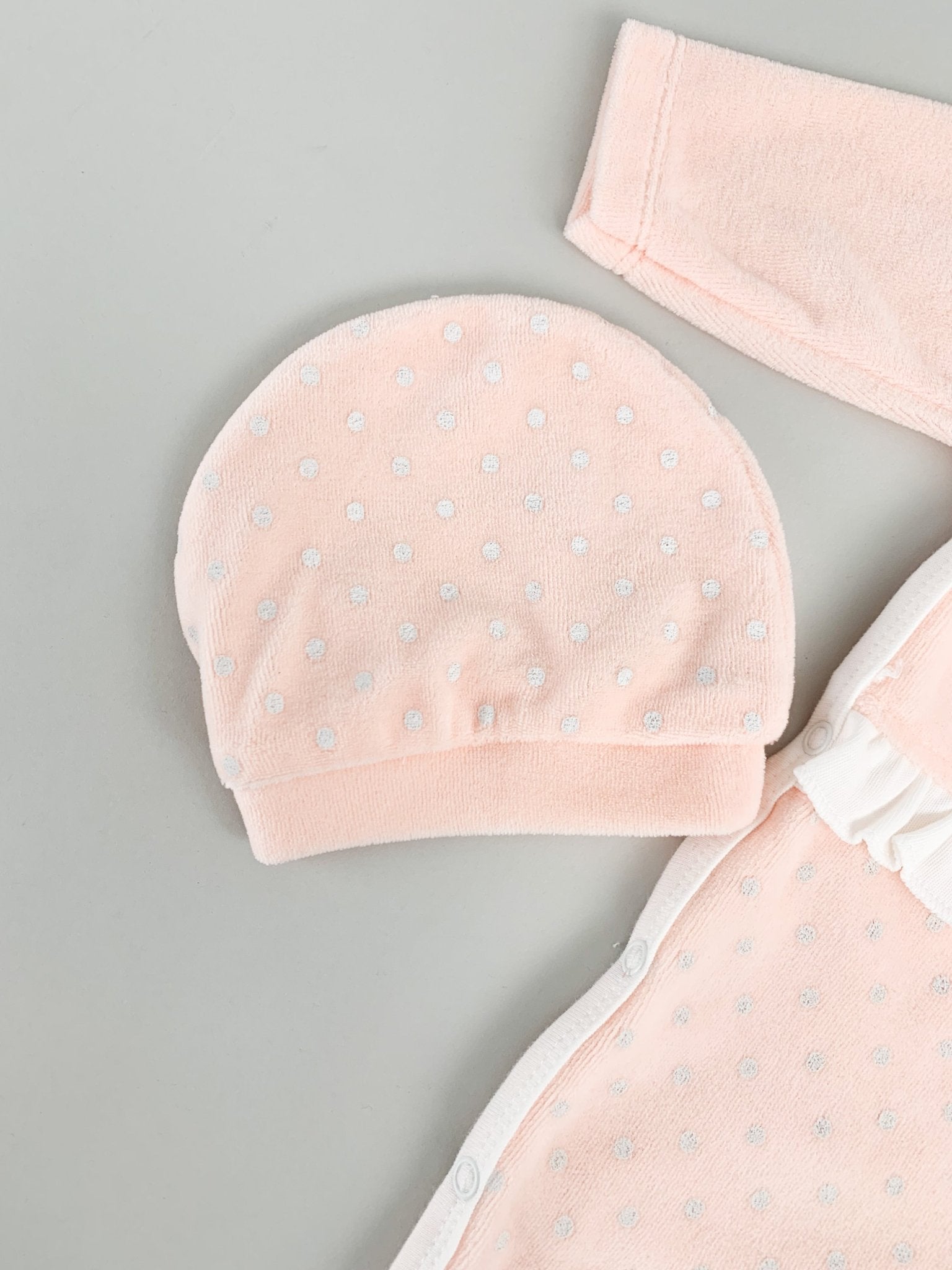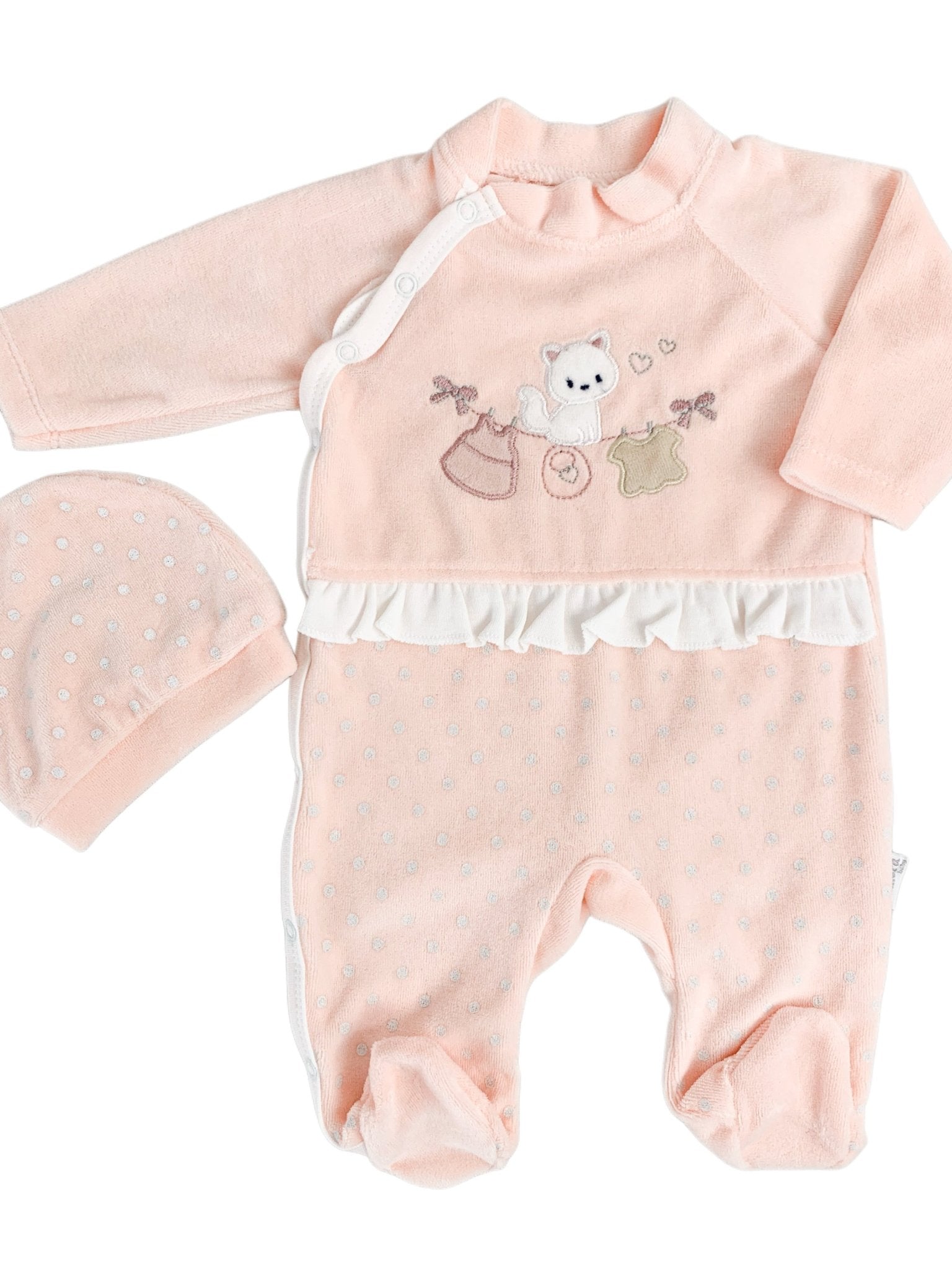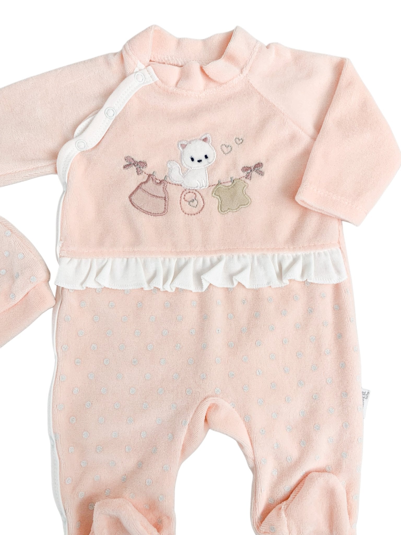 Aceasta salopeta pentru fetite cu caciulita este ideala pentru plimbari in parc, joaca, somn sau iesiri in aer liber, fiind totodata o idee minunata de cadou pentru bebelusi.