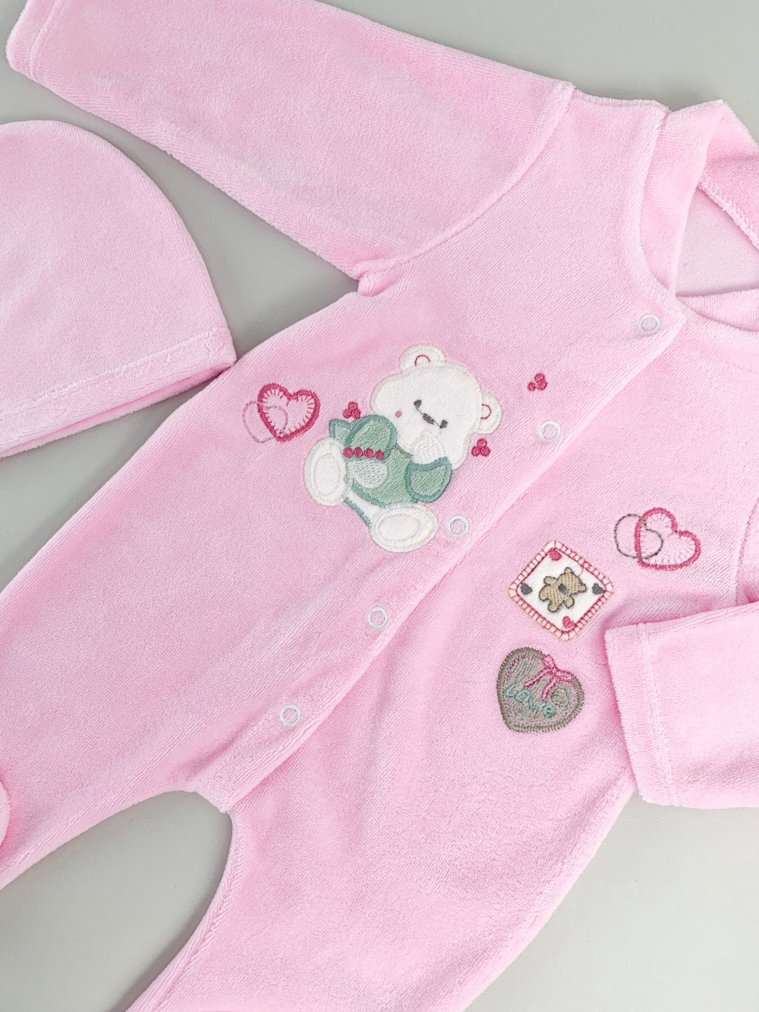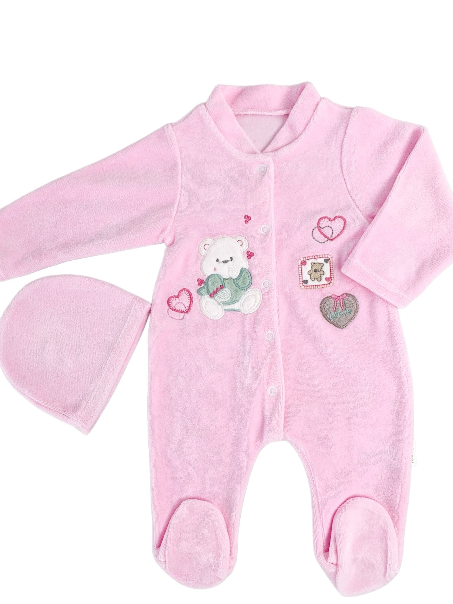 Aceasta salopeta roz pentru fetite, confectionata din material pufos, calduros si antialergic, este ideala pentru toamna si iarna, combinand confortul cu un design adorabil. Salopeta este perfecta pentru pielea sensibila a bebelusilor si ofera libertate deplina de miscare.