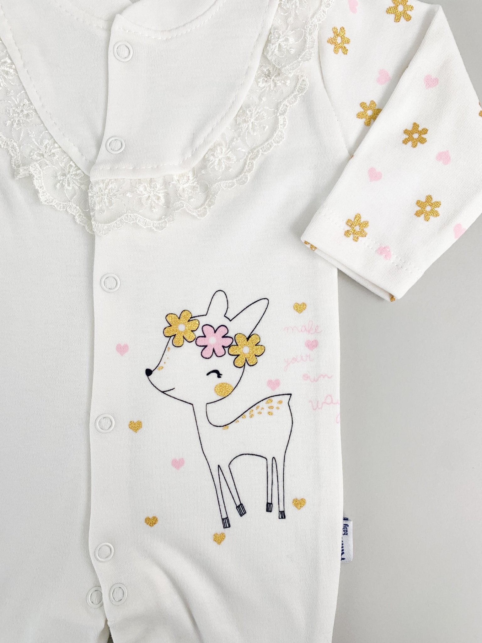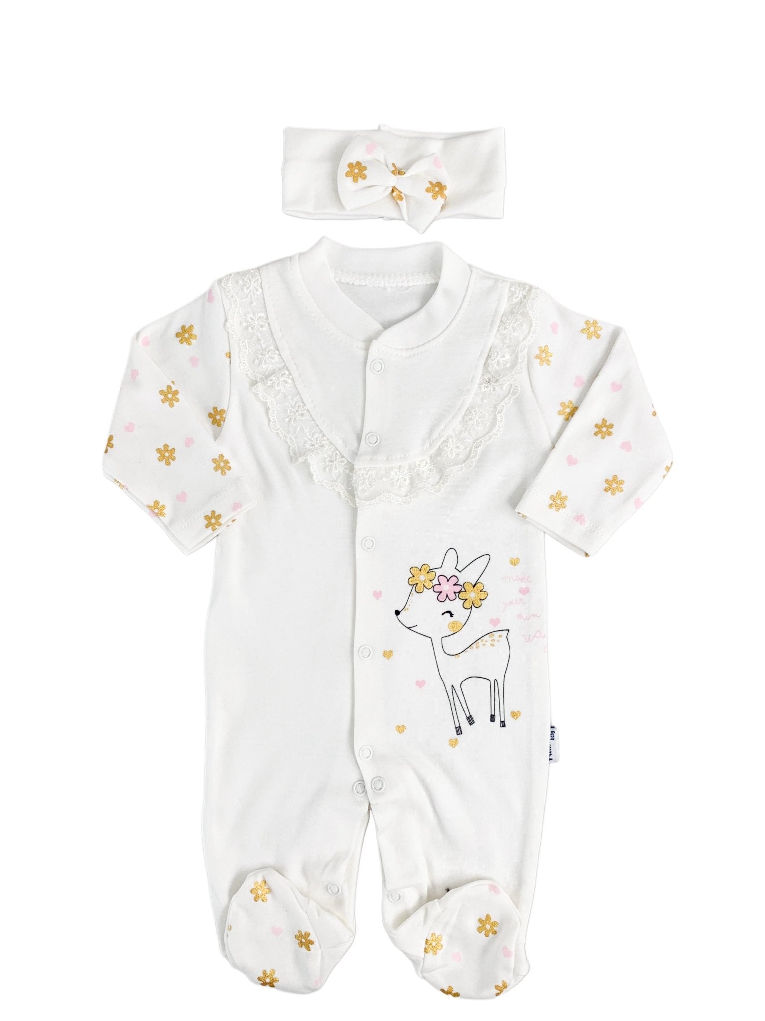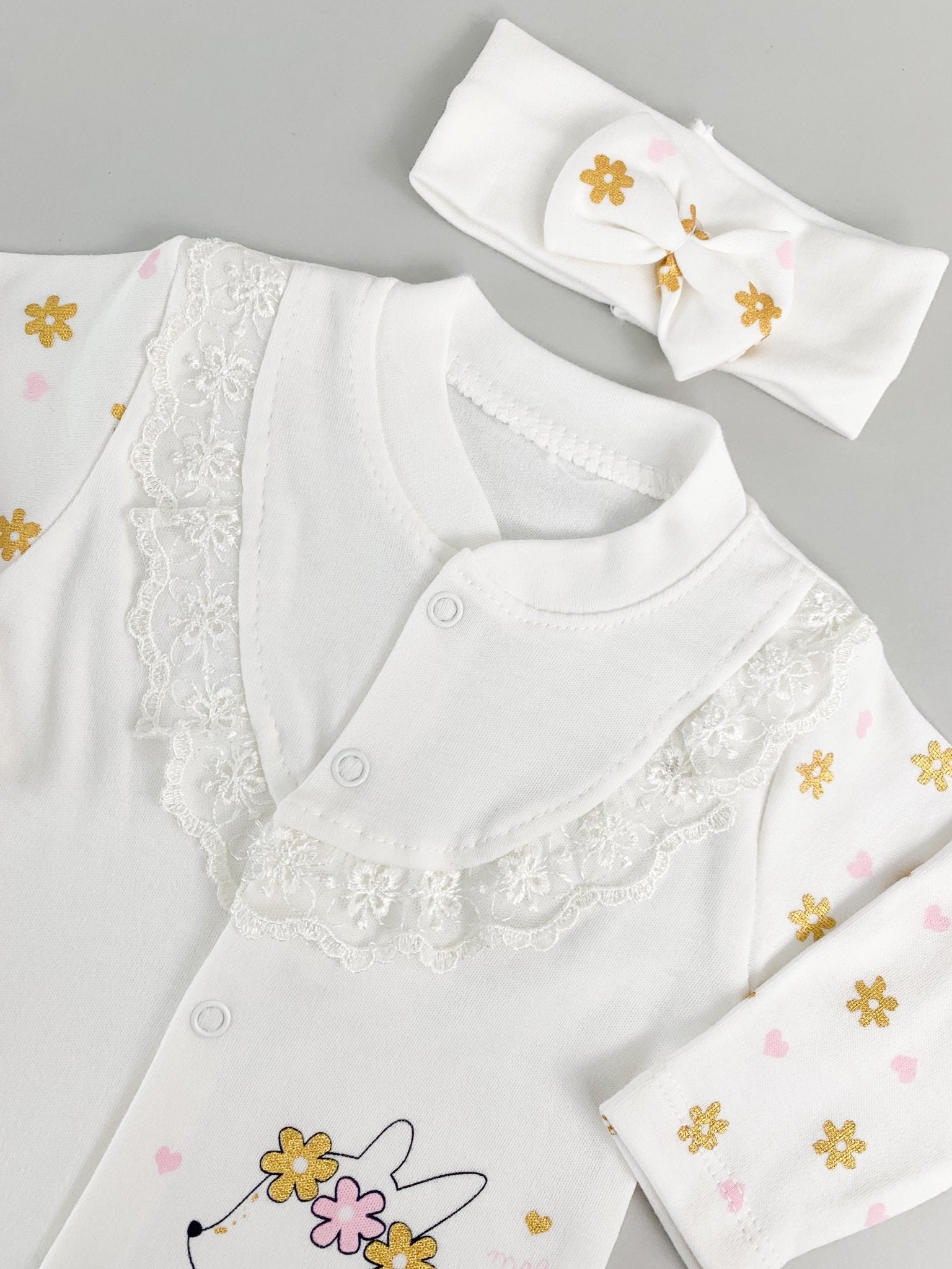 Salopeta Nou-Nascut alba cu floricele - 2 piese
