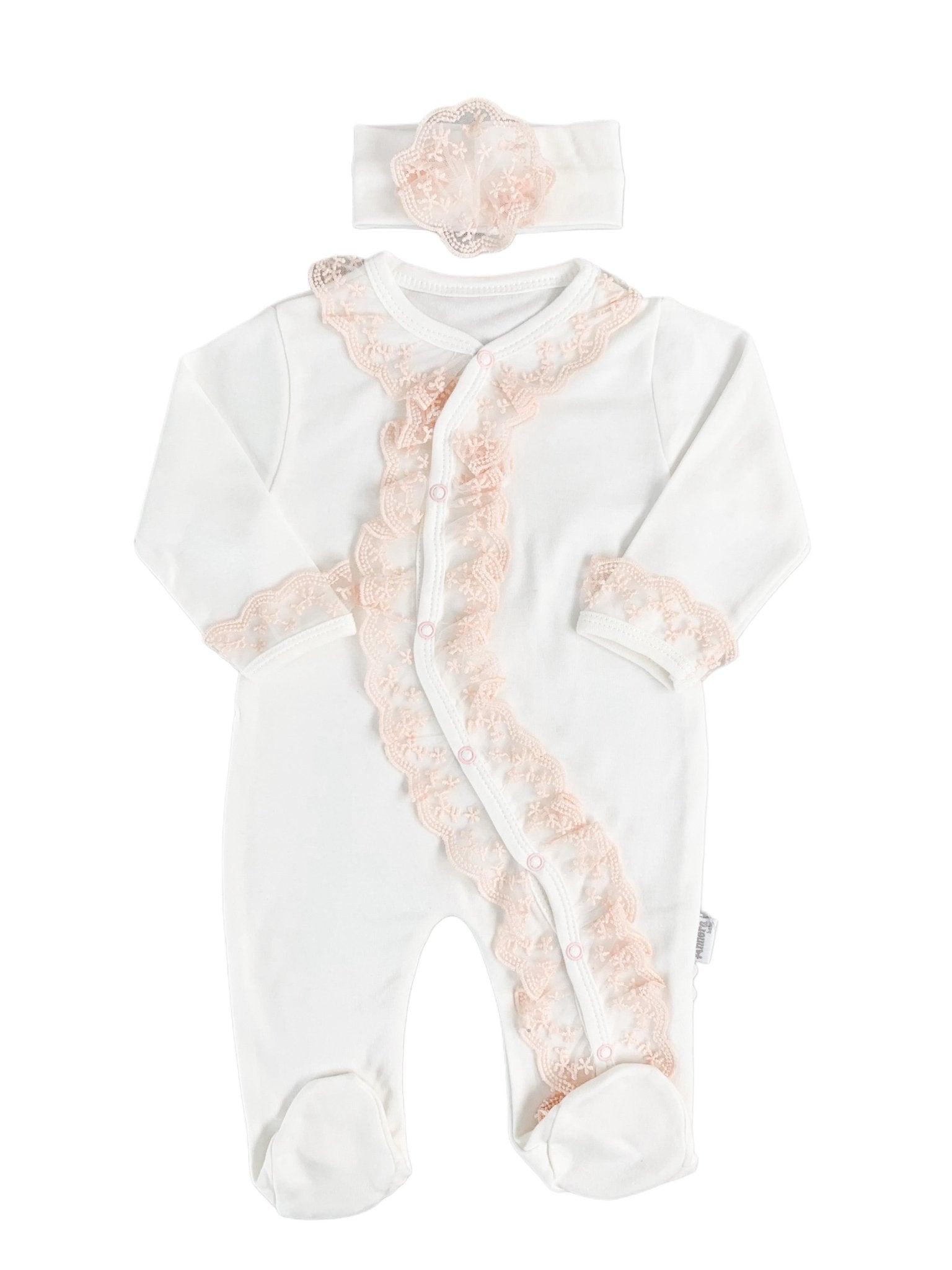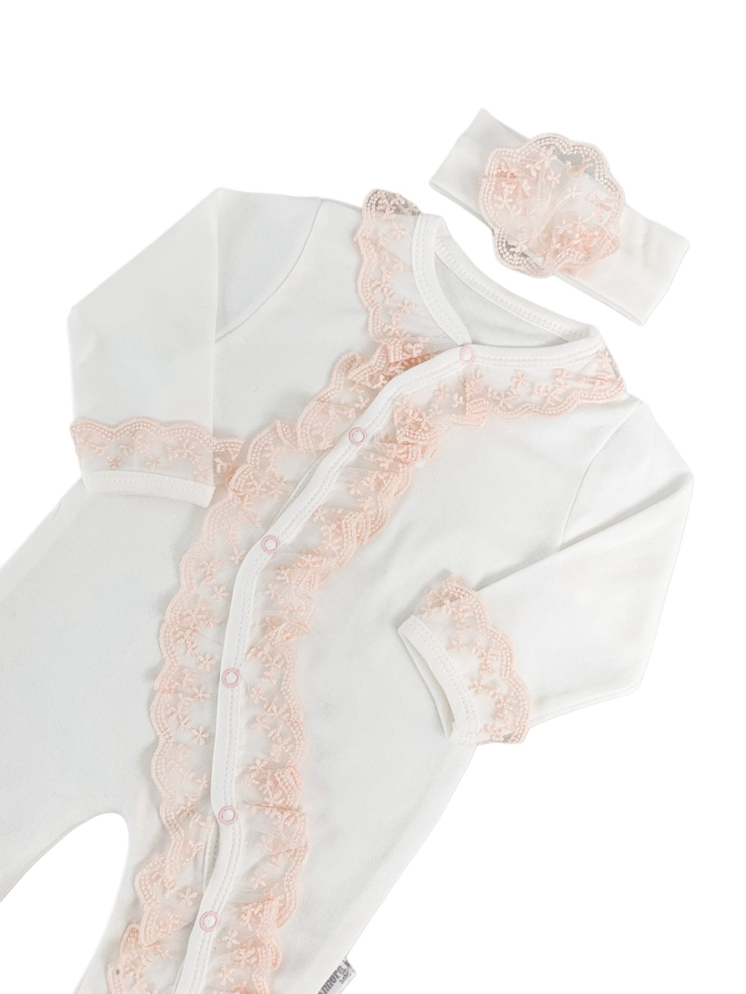 Salopeta Nou-Nascut alba cu volanase - 2 piese