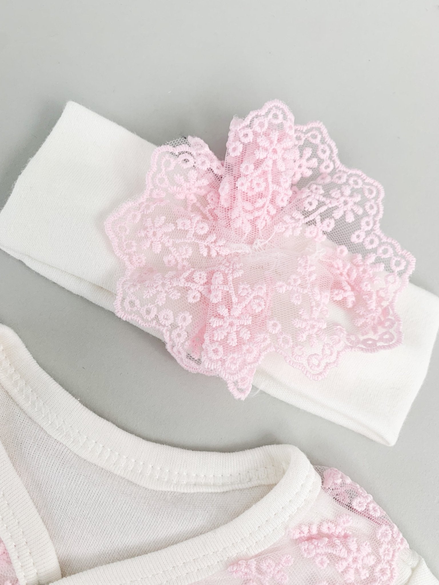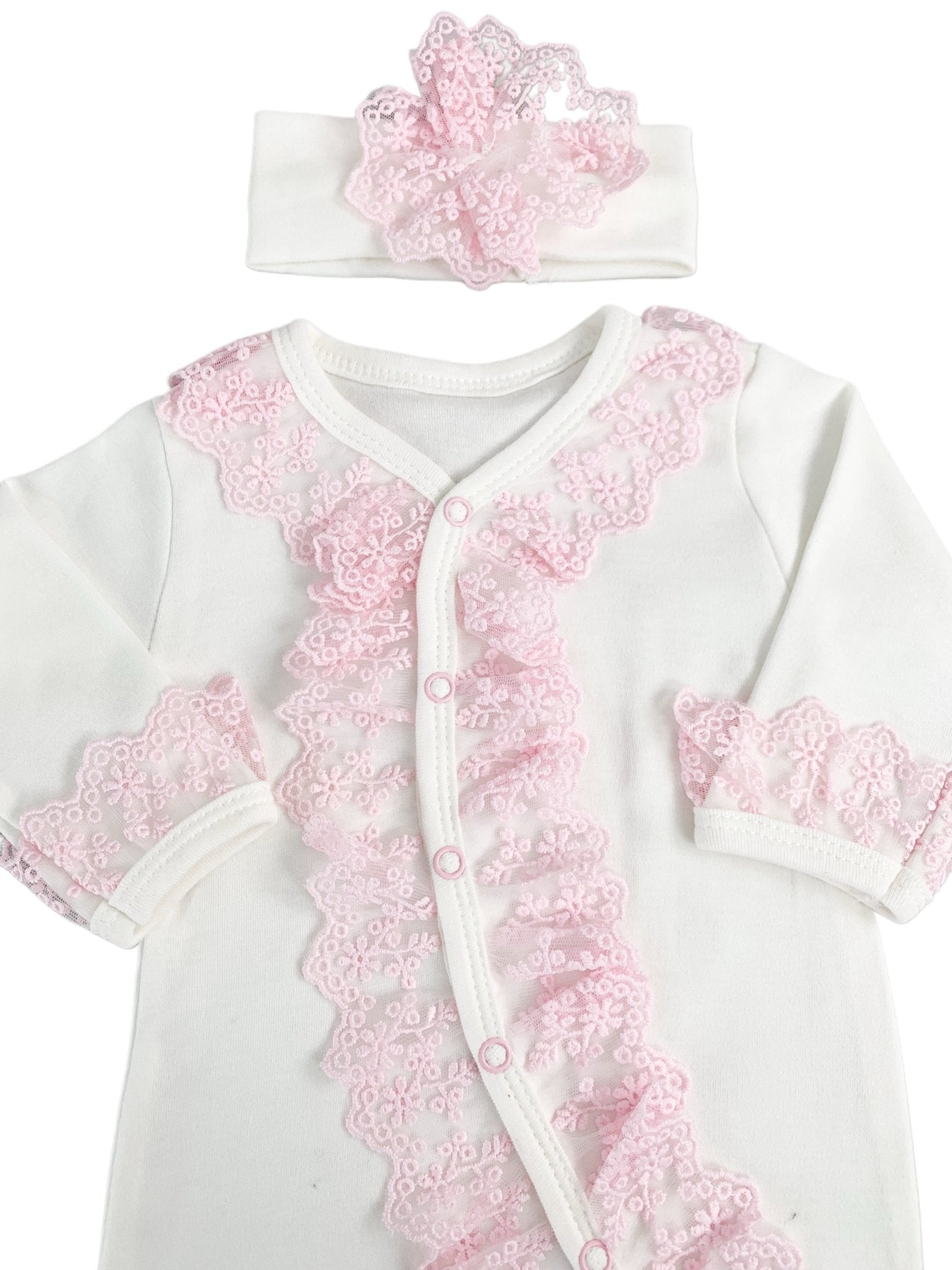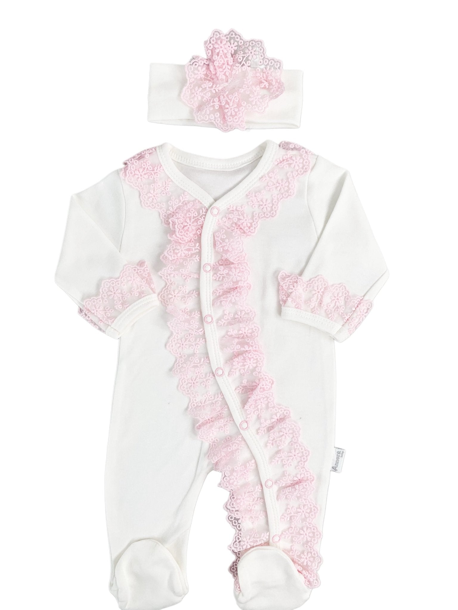 Salopeta Nou-Nascut alba cu volanase roz - 2 piese
